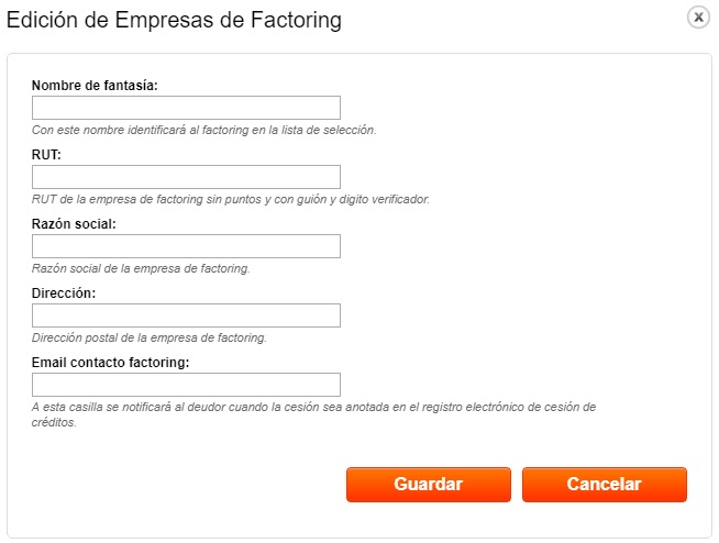 Módulo destinado a detallar el proceso de factoring. Para acceder a esta opción, el usuario deberá ingresar en el módulo de “Factura de Clientes” y buscar el documento a ceder. Una vez identificado, seleccionar la última opción denominada como “engranaje” y, dentro de la gama de opciones, seleccionar “Cesión de este documento”.