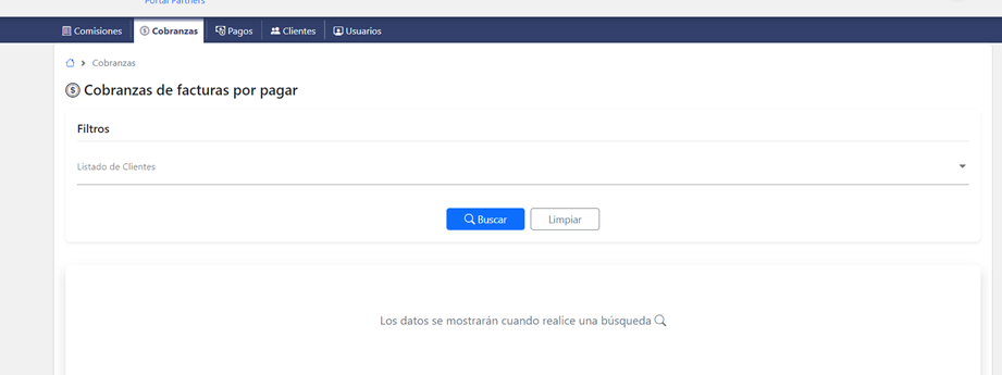 Esta opción permite ver un listado de las facturas por pagar que tiene los clientes del Partner