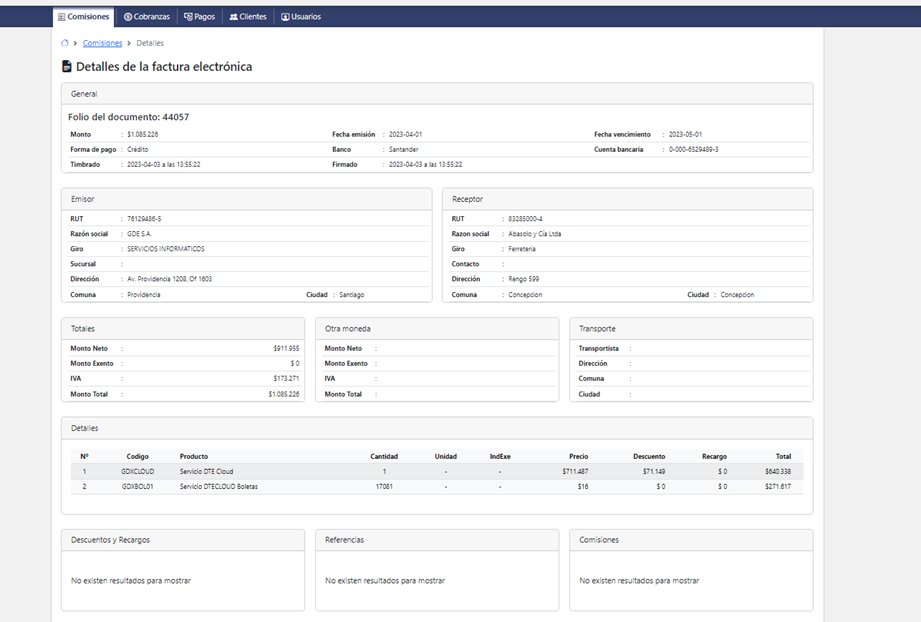 Adicionalmente en cada línea se muestra un botón que permite ver el detalle del documento